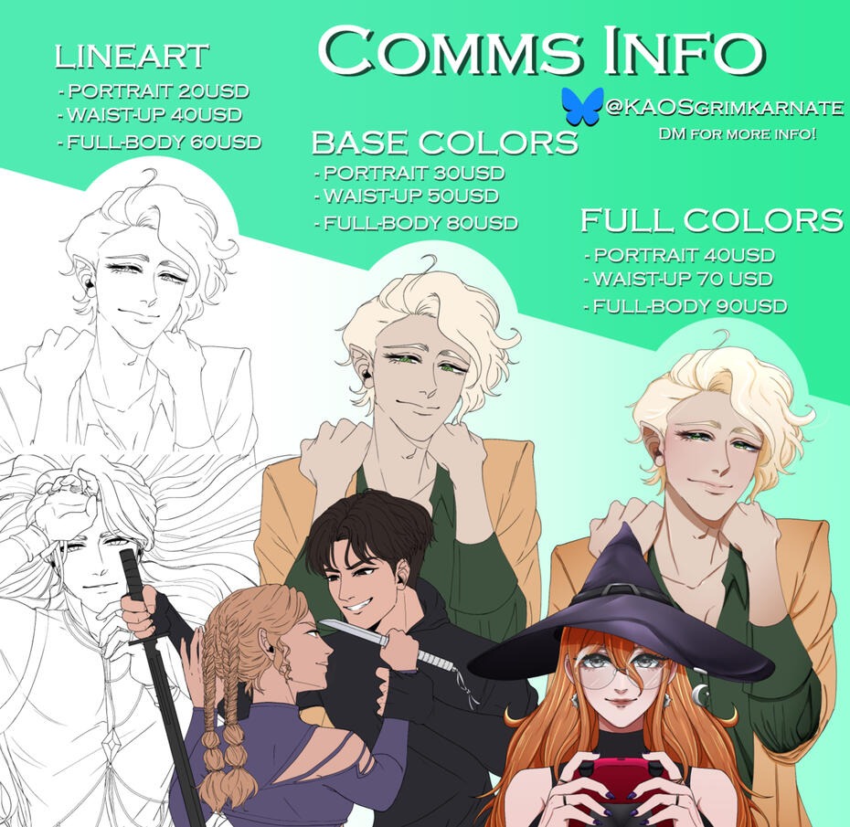 From lineart only to fully-rendered pieces. My regular commissions start from 20usd for a lineart portrait and ranges up to 90usd+ for fully-rendered pieces. I'm open to negotiating this, and I'm also open to installments!